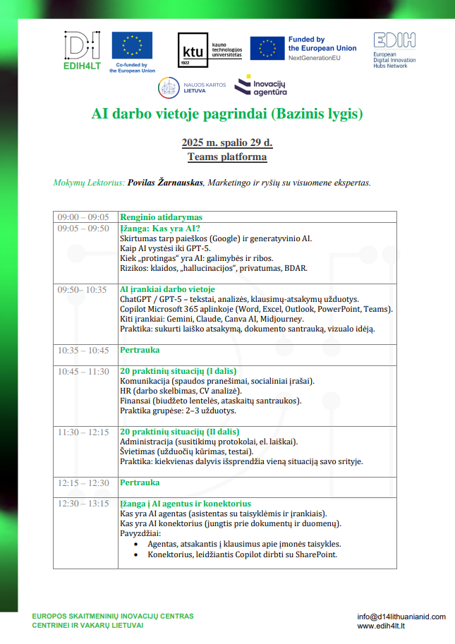 💡 2 -oji diena, spalio 30 d., dirbtinio intelekto darbo vietoje mokymų diena – skirta pažengusiems.